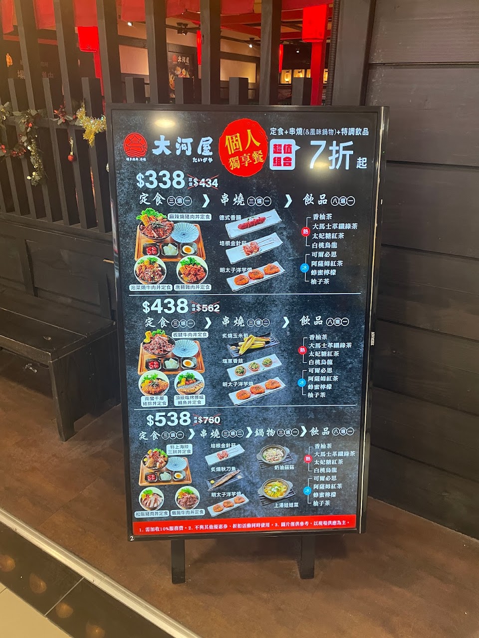 吃飯時間到中友百貨地下樓猶豫不決要吃什麼時候,就會考量到吃飯的環境及餐點的性價比,大河屋就會脫穎而出,約會.家庭聚餐都蠻合適的日式居酒屋。