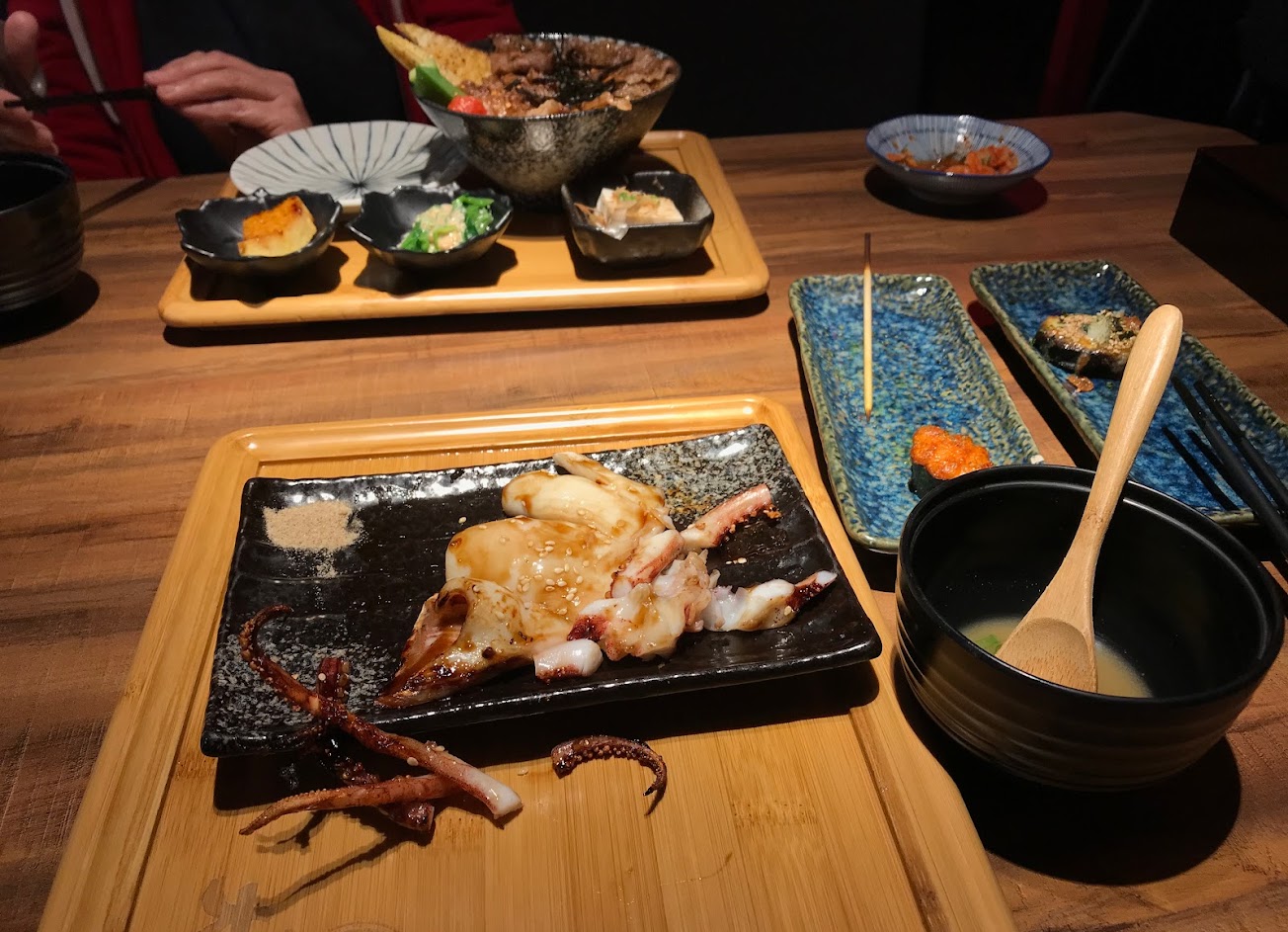 這是第一次來吃大河屋,路過就被圖片吸引力,打開菜單每樣都想吃,因為想吃多樣就只好點了一碗丼飯剩下單點,麻辣燒肉丼飯超開胃的,燒烤醬加上辣椒甜辣好吃,單點明太子節瓜清爽可口但要小心燙口,起司香菇超水嫩起司還會牽絲,椒鹽魷魚Q彈有嚼勁,蔥鹽烤雞腿滿滿蔥香繞於口,酒香蛤蜊香氣陣陣,這頓飯吃的滿足又開心? …