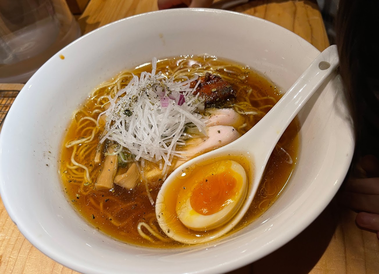 好店必須推 湯頭清澈卻不無聊,每項配料與食材帶出平衡的層次,從第一口到最後一口都有不同風味, 是非常少數讓人驚艷的醬油拉麵,魚介也好喜歡。 建議開店後早點到,比較不會品項向隅