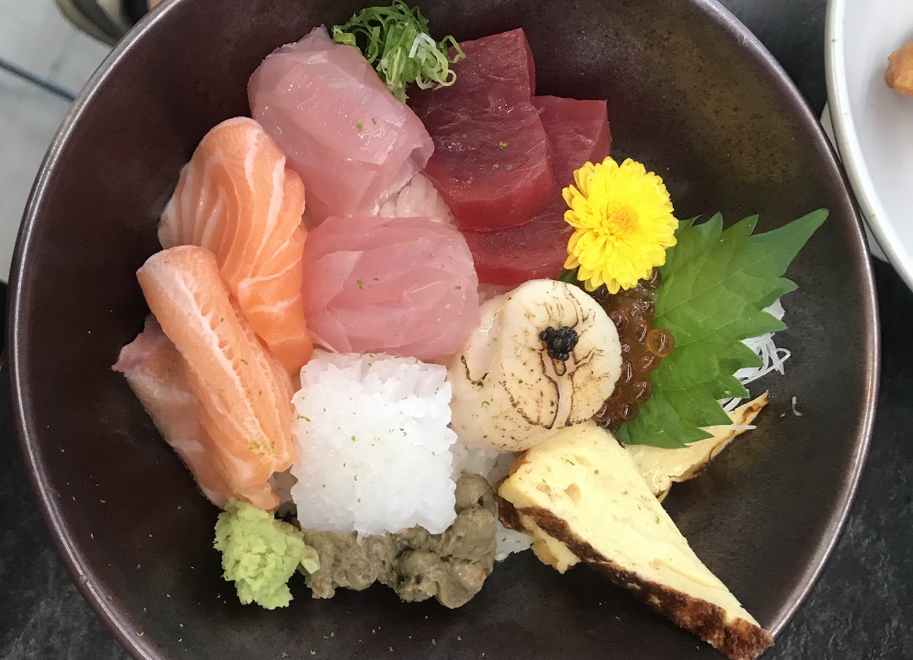 點了盛合海鮮丼,肉質鮮甜,刀功細緻,醋飯也調和得剛剛好,不會像有些海鮮丼吃完會很渴。本身不敢吃蟹膏,但這裡的蟹膏沒腥味,很鮮美,非常下飯。
