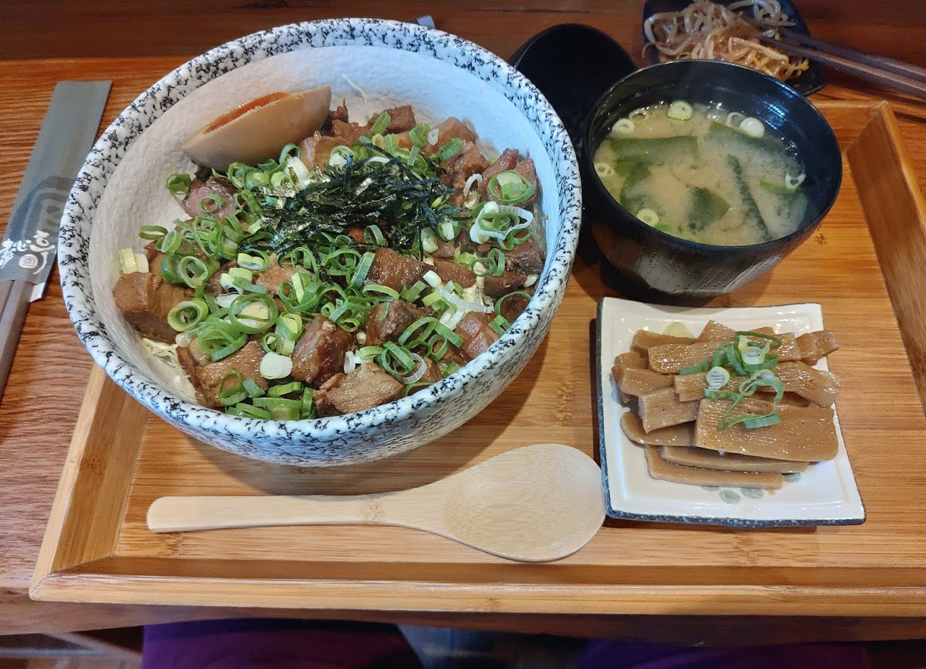 會附贈一份泡菜或筍干,這道的肉也是給的很大方重點居然是正方體的叉燒?不像一般拉麵店的叉燒飯都是碎碎的肉,秘製醬汁也整個好下飯?