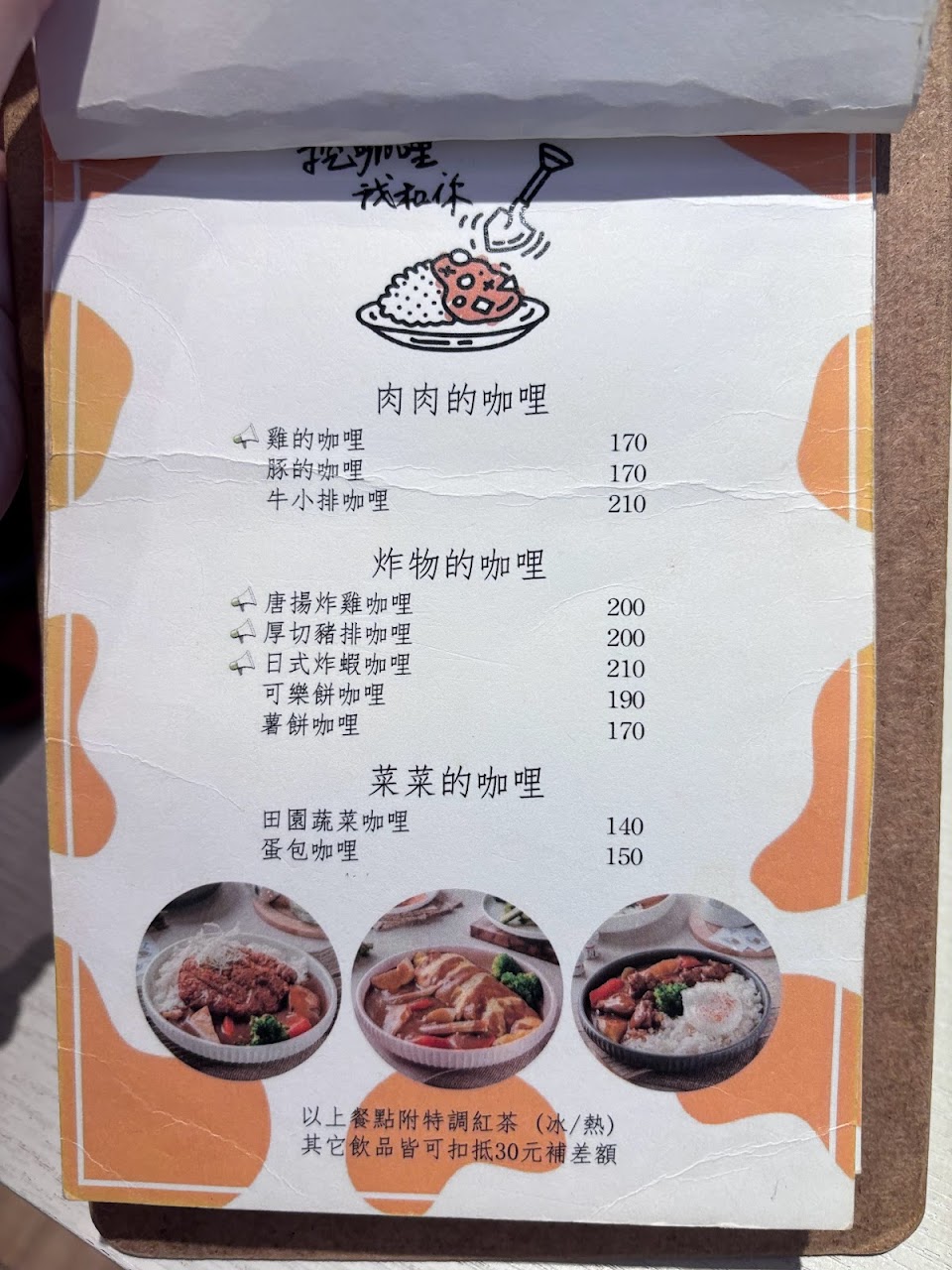 咖喱味道很不錯,價格也很合理,重點是!他的飲品真的很棒!我的認知中這類型的餐廳飲品都挺普通的,配不上本身的標價,但是這間的飲料味道有讓我驚喜到,飲料本身的價格在50-60元,點餐又有折扣30元,雖然是小杯的,但真的很好喝!我點的是鮮奶茶,感覺比我在外面喝到的都好喝,希望以後能出大杯的然後能提供外帶,然後希望冷氣可以開強一點,外面真的很熱,一走進去感覺真的很悶,體驗感很不好,希望可以改進?不然真的很不錯,除了這點無差評 …