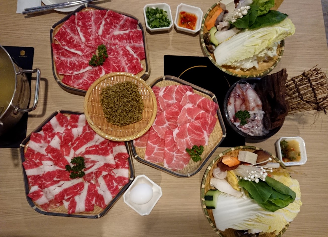 湯底:昆布、叻沙 牛板腱打卡升級 5??8盎司 屬於油花偏少的肉品,很新鮮但注意別煮太久才不會老掉 升級打拋豬飯+25 單點烏龍麵、黃金福袋、胡椒貢丸、松阪豬 單點的品項都還不錯 超推叻沙,它是咖哩口味的,很香濃順口,建議還沒被食物玷污(喂)之前多喝些 完全不推換打拋豬,舀叻沙湯到飯上好吃很多 建議可以放網狀撈泡泡的 下樓結帳前發現樓下的醬料區都有明確表示是什麼 也有立在桌上的醬油跟醋 這些樓上都沒有,這點請一定要改善 因為我當下的念頭就是:欸?那誰要坐樓上!! 服務生可以更主動一點介紹廁所啊點餐啊或是推薦什麼之類的相信會更好
