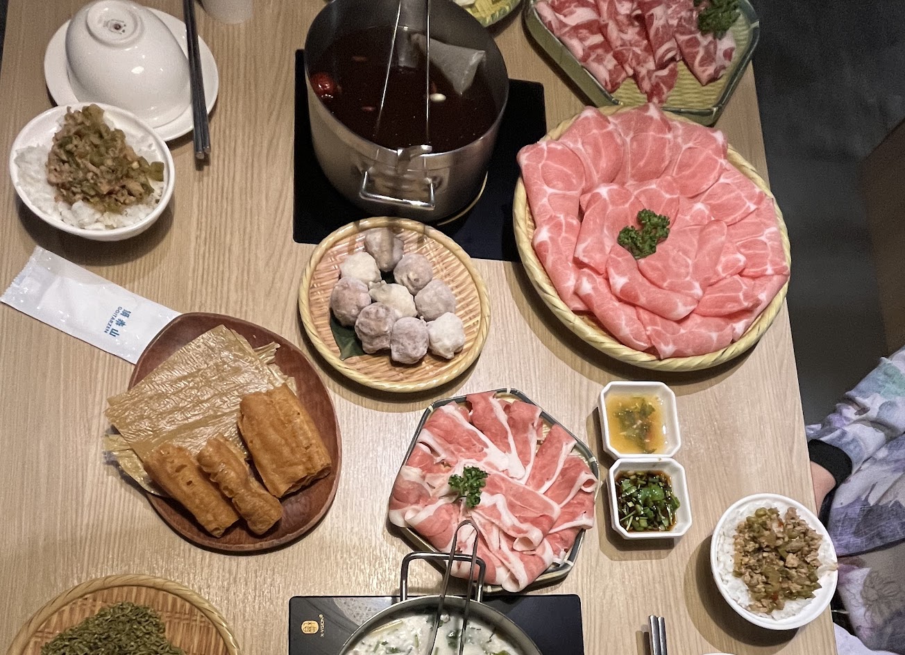 自製高湯的休閒火鍋餐廳,供應多種肉類與蔬菜。