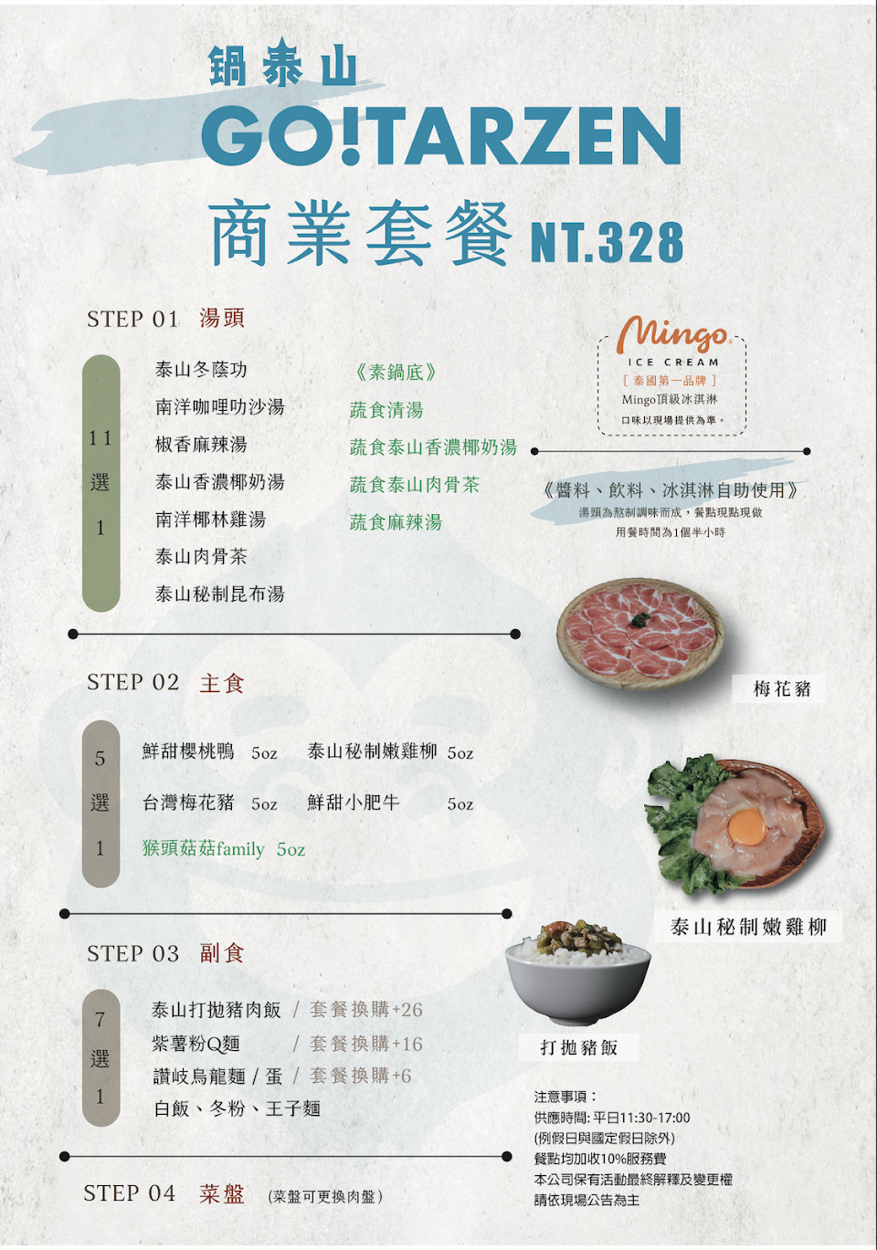 湯頭跟冰淇淋(榴槤、泰奶口味)很可以!食材就還好,一般般…特別是雞柳吃起來像雞胸… 餐點:3 服務:4 氣氛:4