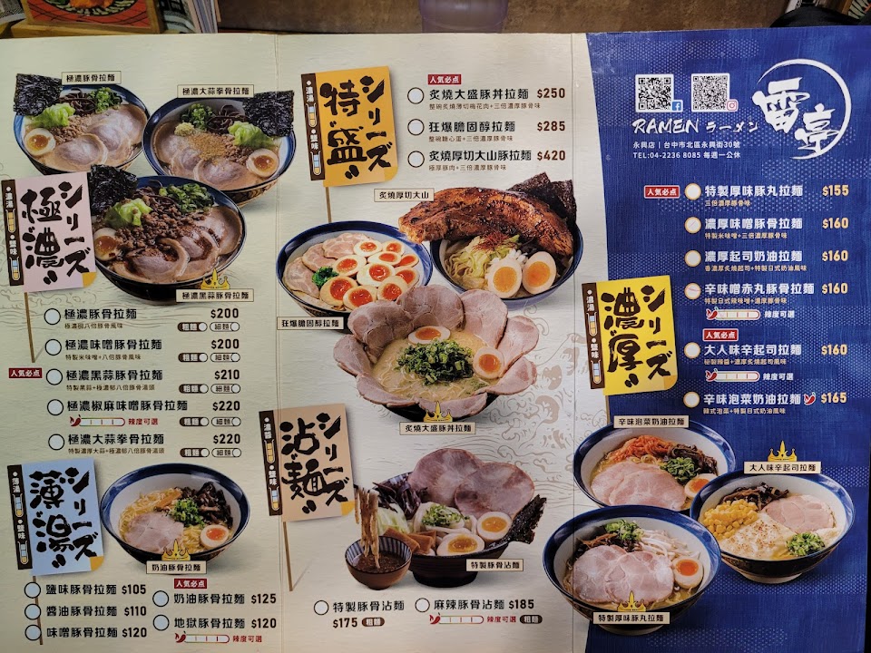冷氣很強,拉麵cp值高,湯頭順口好喝 平均每人消費金額 $1-200 餐點:5 服務:5 氣氛:5 建議的餐點 灸燒大盛豚骨拉麵