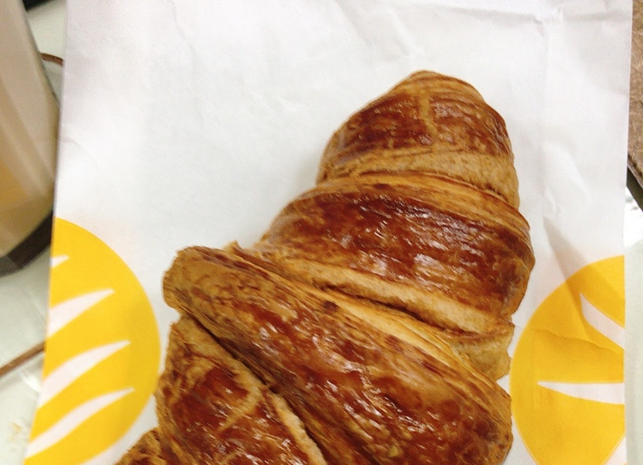 今天早餐叫了無敵豬肉滿福堡 麵包直接烤焦