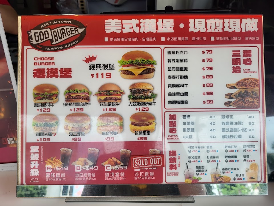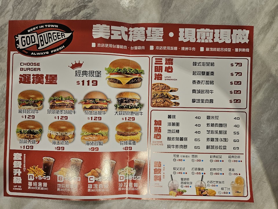 2024最新在地推薦餐廳的菜單_很堡God Burger一中太平店的菜單、圖片