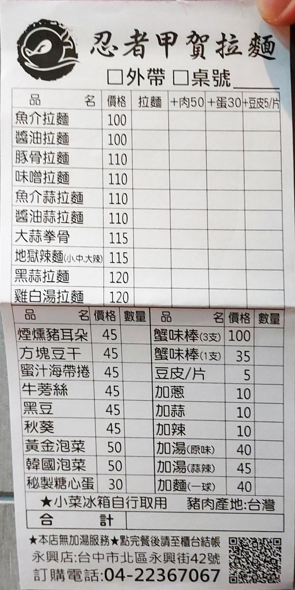 2024最新在地推薦餐廳的菜單_忍者甲賀拉麵-永興店的菜單、圖片