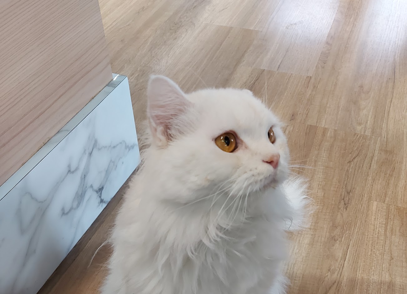 不會跳上桌子就是默默在地上旁邊