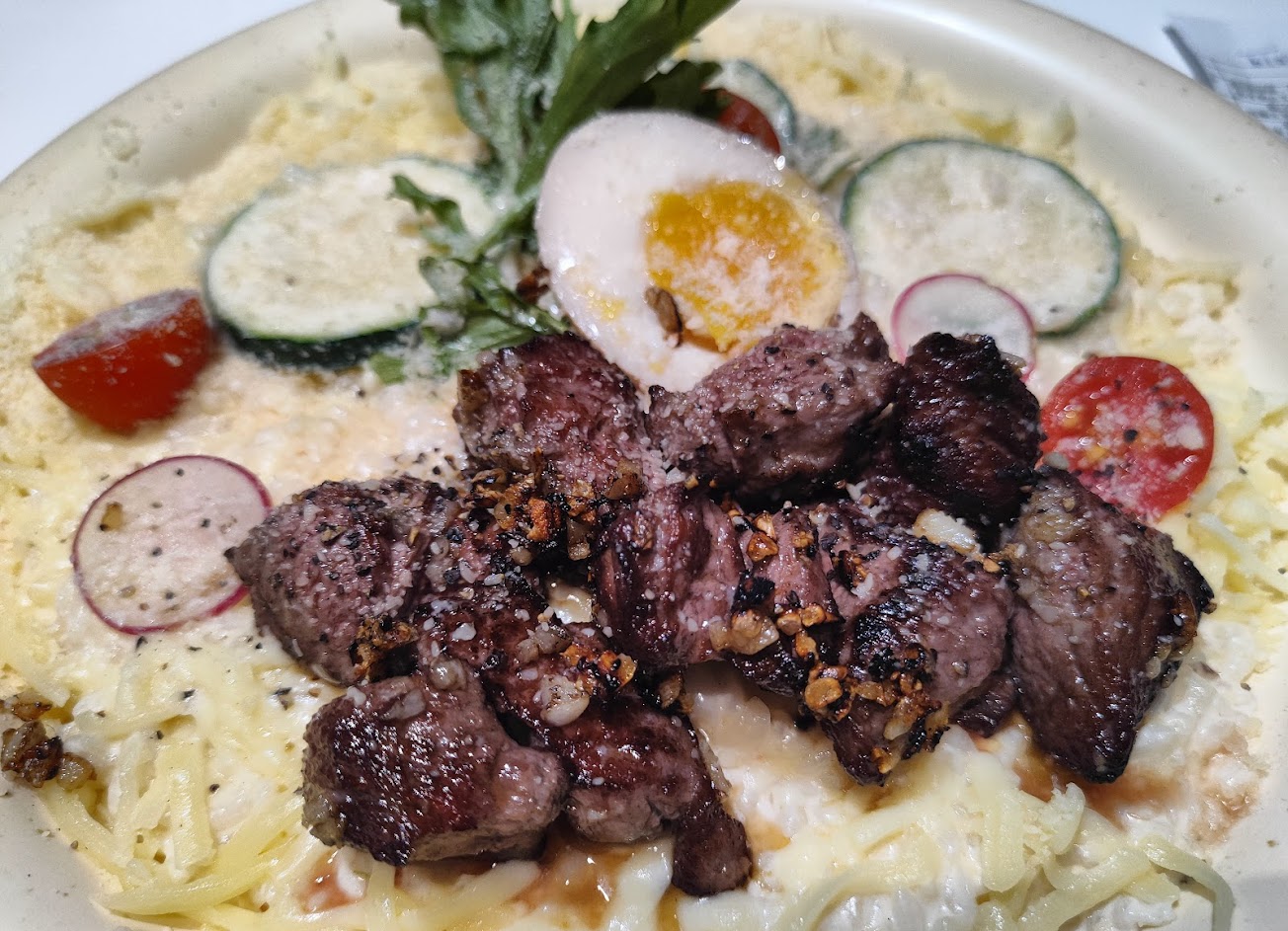 濃郁的口感 雞腿排的皮也非常酥脆爽口,牛肉煎的恰當好,配上為焦的蒜片???驚艷