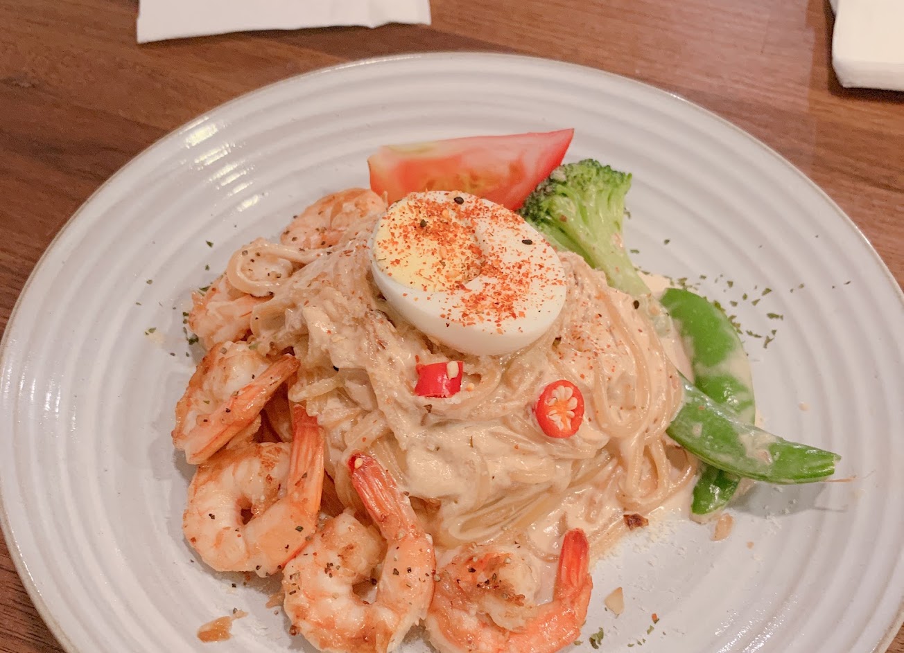 第一次吃到胡麻醬的義大利麵,很不錯,芝麻味足又不會太甜。蝦子很新鮮,配起來好吃。葡萄乾建議去掉。飲料偏貴,套餐可以不用加價的飲料選擇很少。
