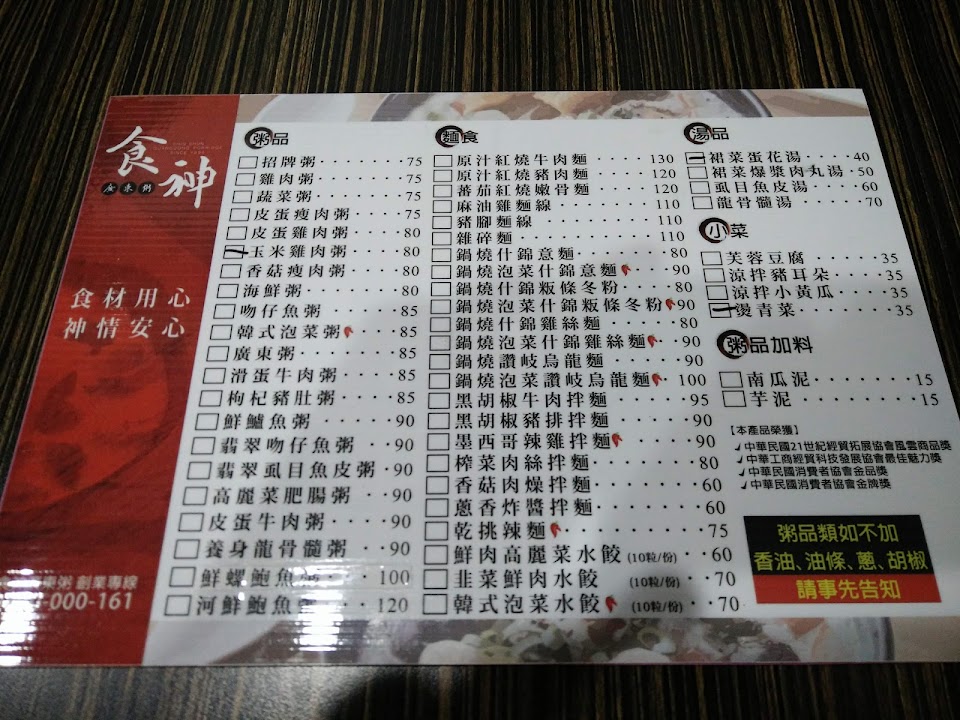 2024最新在地推薦餐廳的菜單_食神廣東粥的菜單、圖片