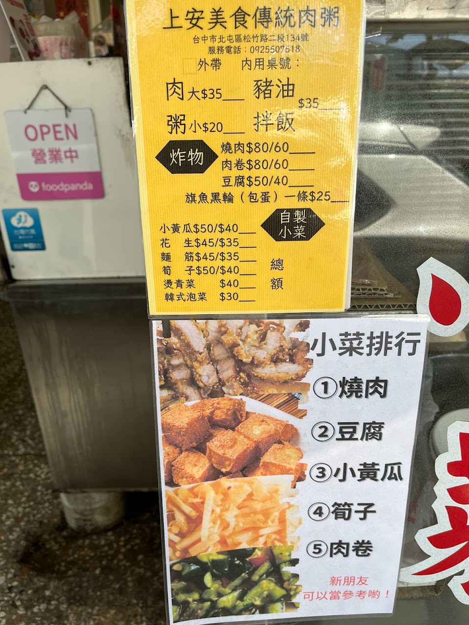 好久沒吃肉粥了 松竹路新開張肉粥小吃店 年輕夫妻 認真 實在 熱情 誠懇 東西好吃 料理實在 待客謙恭 應該多來消費 我推薦