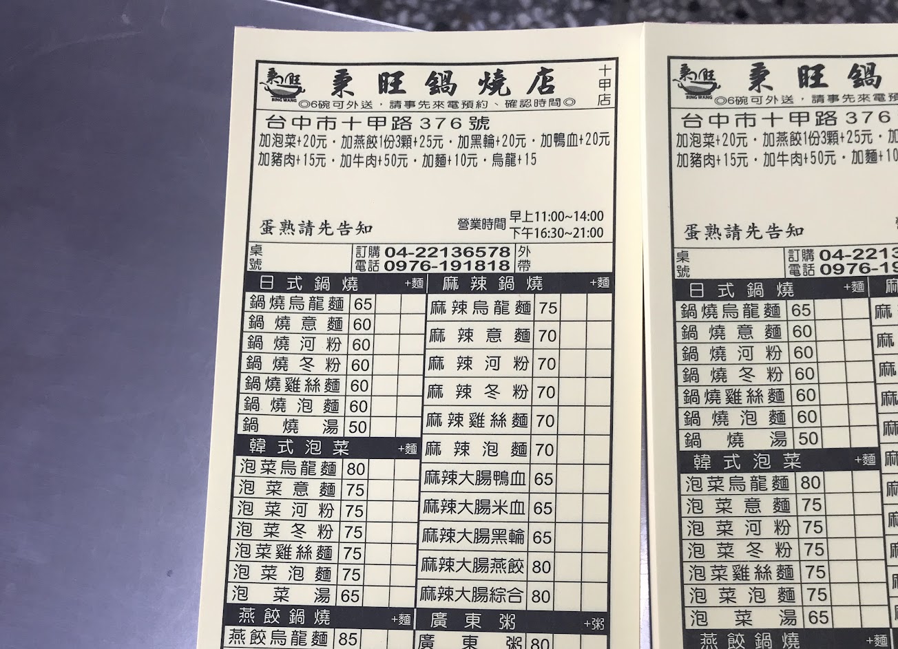 2024最新在地推薦餐廳的菜單_秉旺鍋燒店(台中軍功店)的菜單、圖片