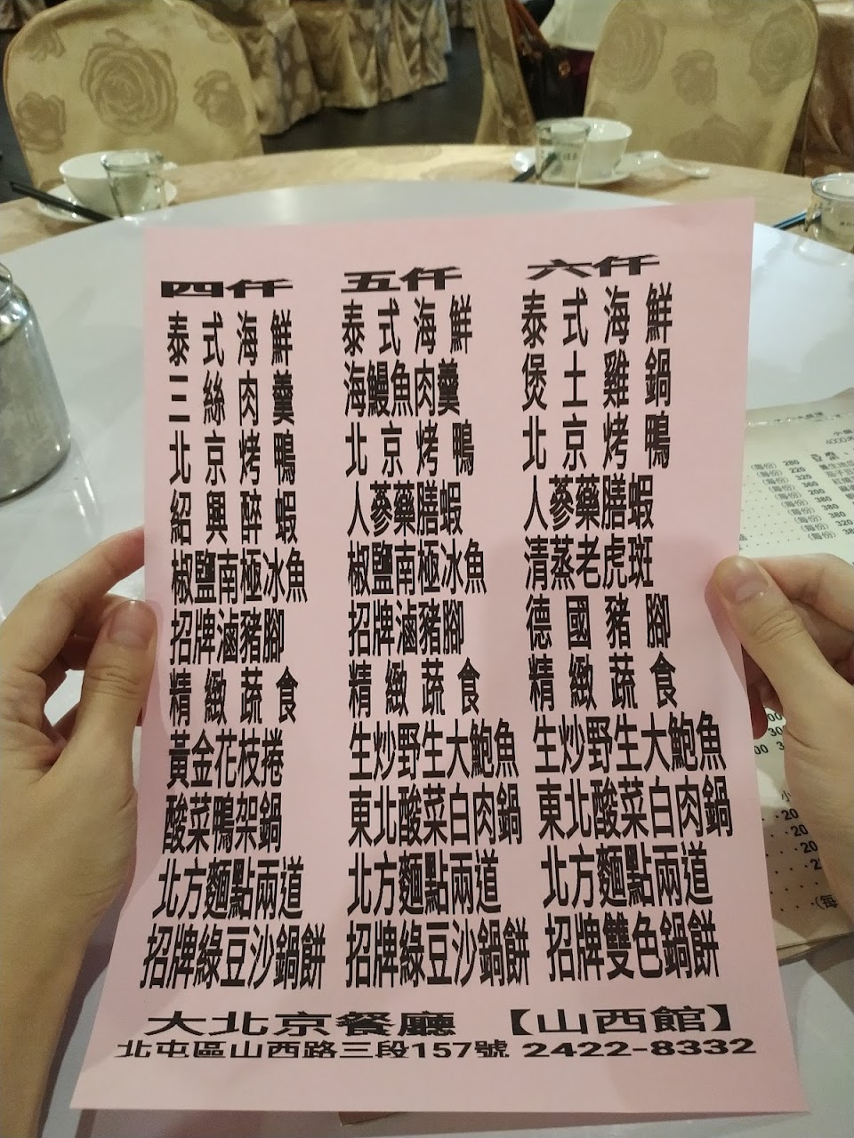 12人桌吃5千元,份量足夠,酸菜白肉鍋,北平烤鴨與綠豆沙餅好吃