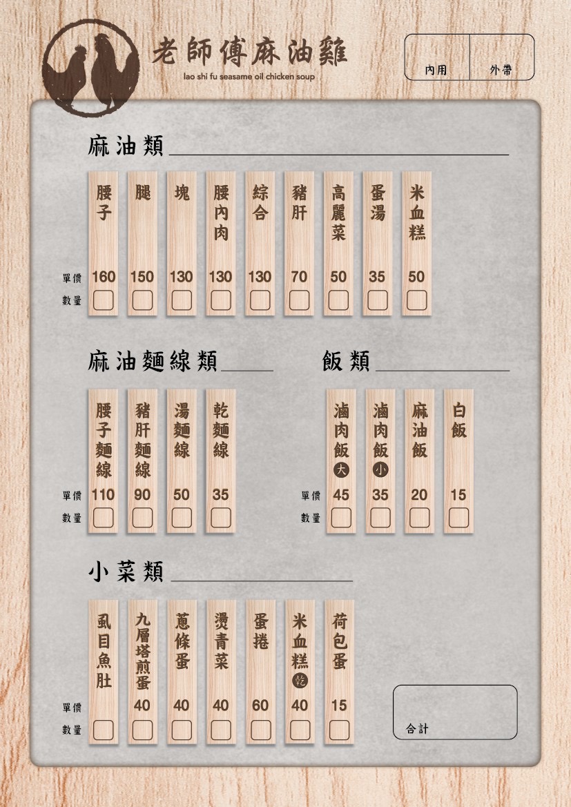 天氣冷冷來吃麻油雞 打卡送米血糕 服務 外帶 餐點類型 午餐 平均每人消費金額 $1-200 餐點:5 服務:5 氣氛:5