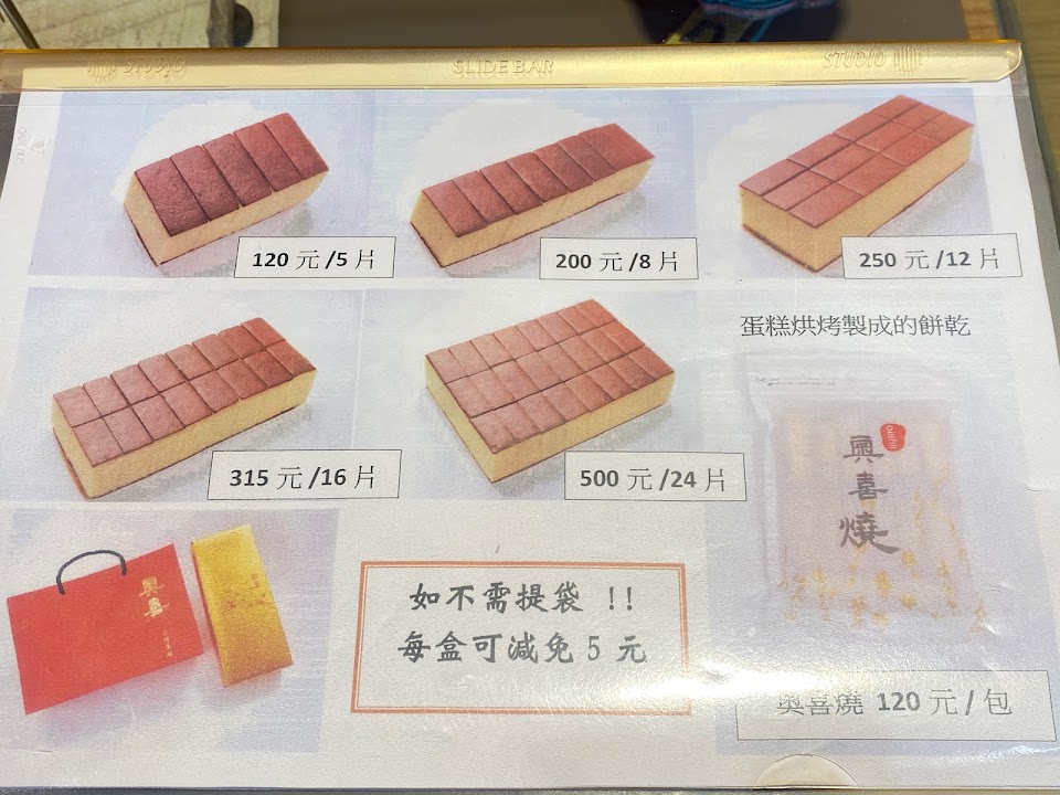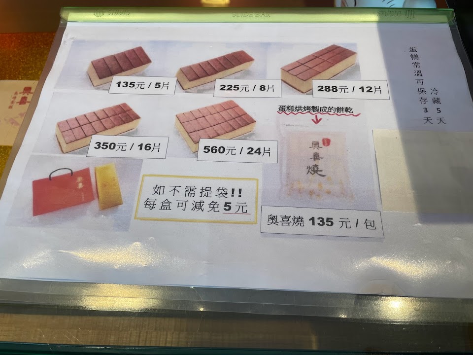 綏遠店沒什麼人,也很小間,櫃檯染頭髮綁馬尾的小姐很漂亮 蛋糕基本尺寸的一條200,不拿袋子可折5元