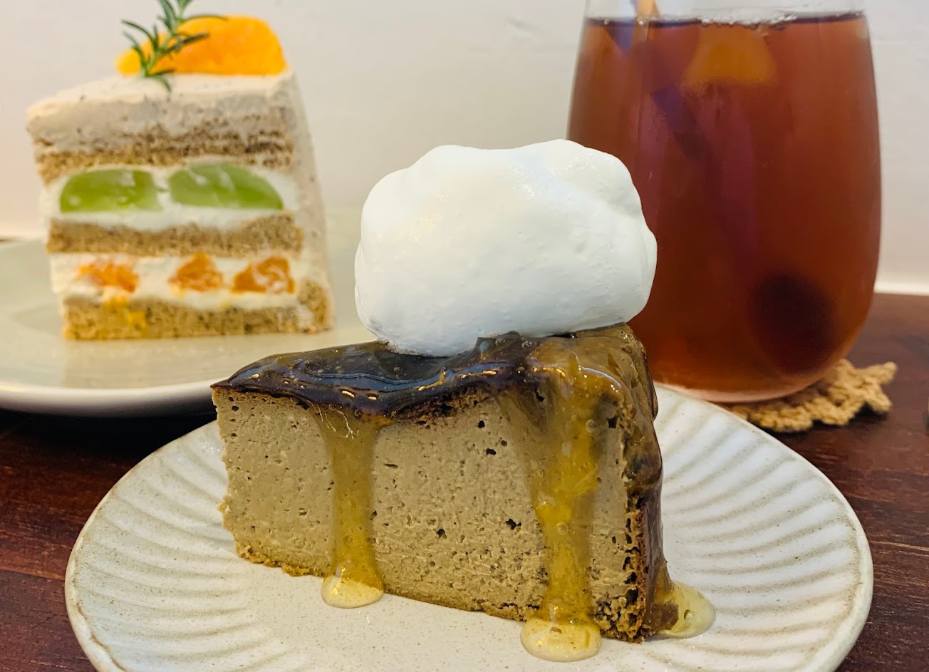 焙茶牛奶+焙茶巴斯克乳酪蛋糕
