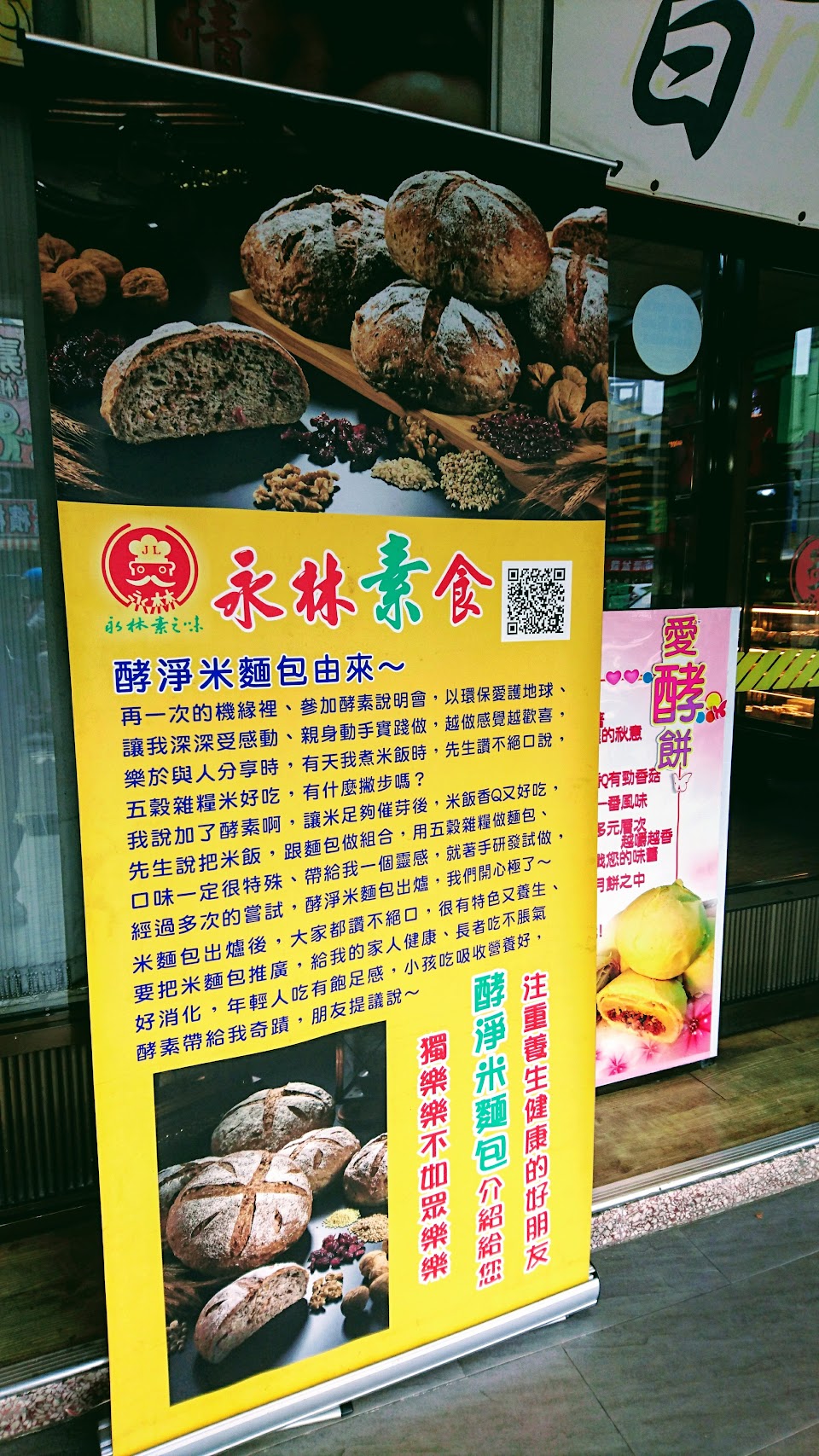 它是一家素食麵包•蛋糕店它好像有連鎖店•店員滿親切的