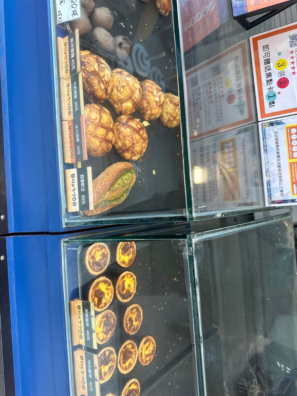 買了蛋塔以及菠蘿麵包,相較之下對蛋塔印象好些,有多種口味可以選擇。