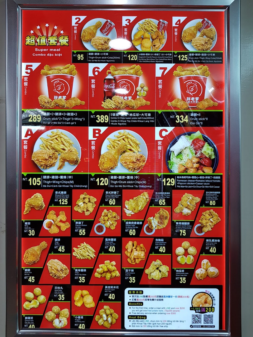 連鎖的美式炸雞店胖老爹,堅持現炸然後特殊處理方式,香味遠遠就能聞到,還有自己的套餐可選擇。