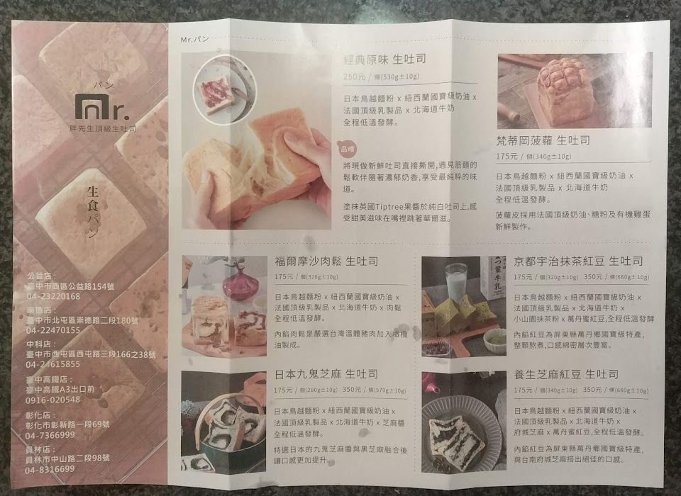 2024最新在地推薦餐廳的菜單_Mr.パン胖先生頂級生吐司崇德分店的菜單、圖片