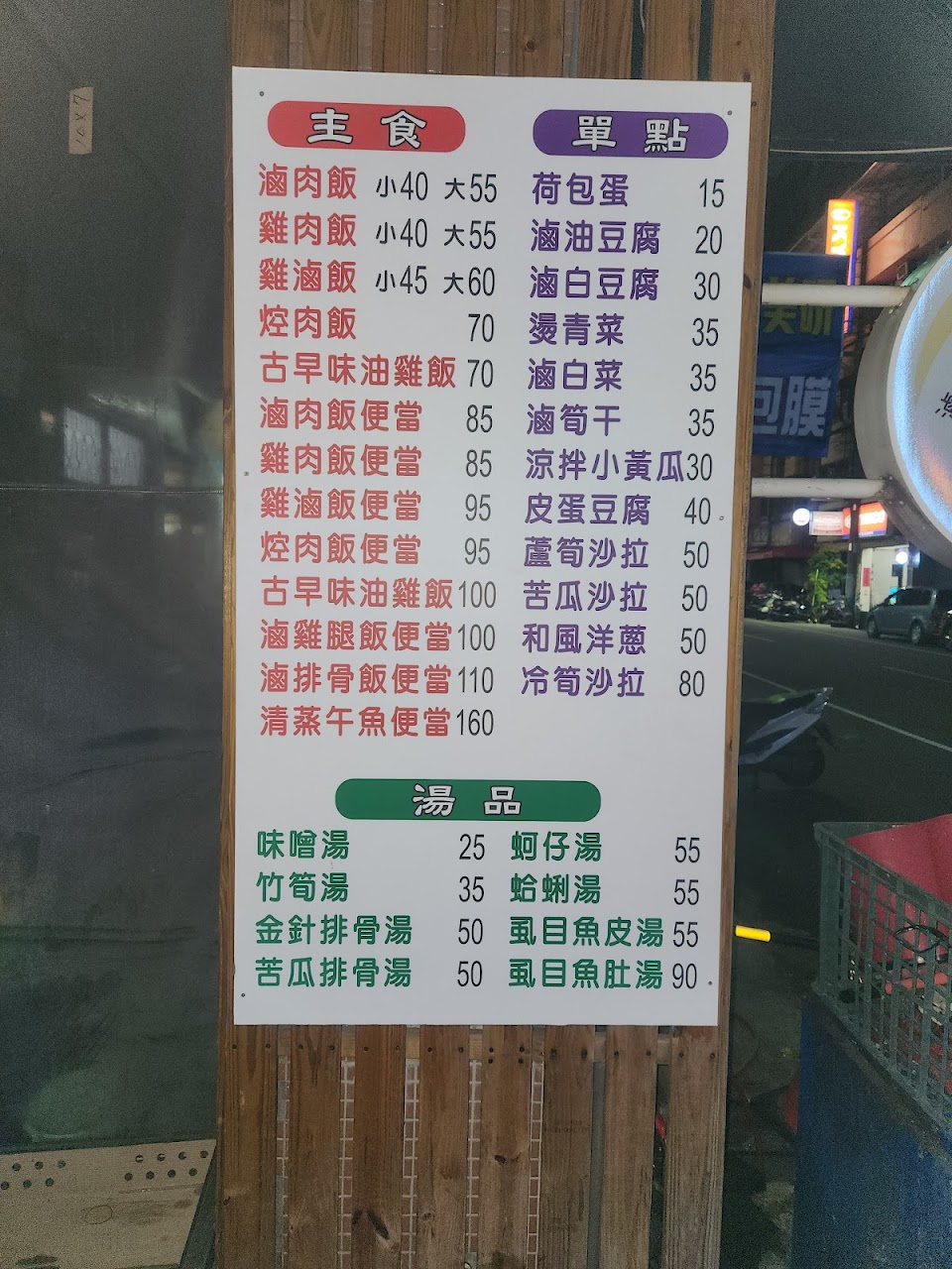 點了竹筍湯、虱目魚湯、雞滷飯便當和爌肉飯