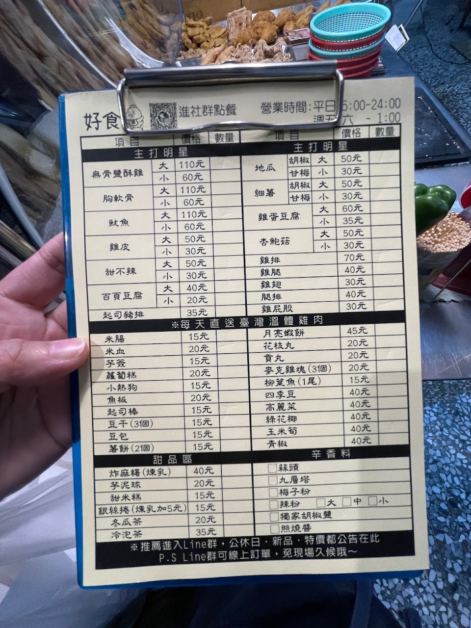 可加入line群組點餐。鹹酥雞有先醃過再炸。
