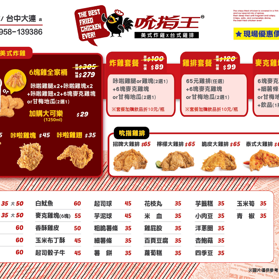 2024最新在地推薦餐廳的菜單_吮指王台中大連店的菜單、圖片