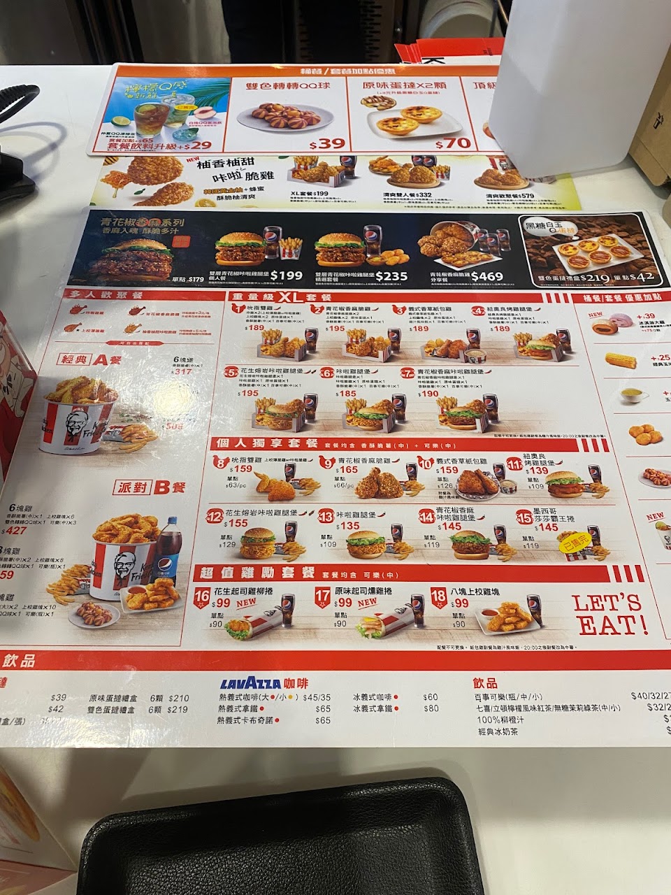 2019/11/23(六)15:00 ❖ 原味炸雞餐($139)兩塊炸雞+薯條+可樂。 ❖ 勁辣雞腿堡 ❖ 玉米濃湯 ❖ 蛋塔 ❖ 薯條 ❖ 紅茶 ❖ 無糖綠茶