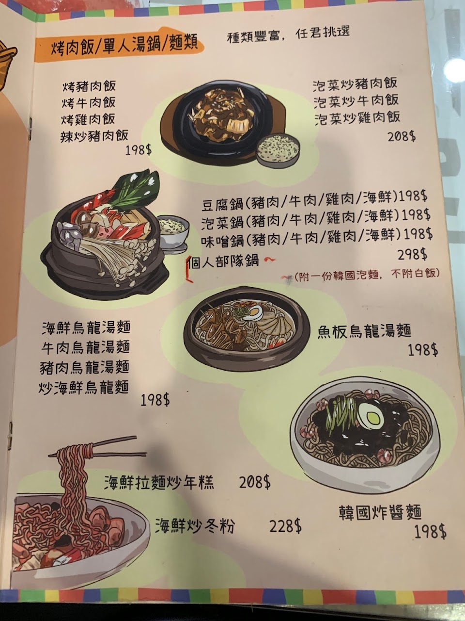 韓式小菜類 石鍋拌飯 韓式炸雞 海鮮烏龍湯麵