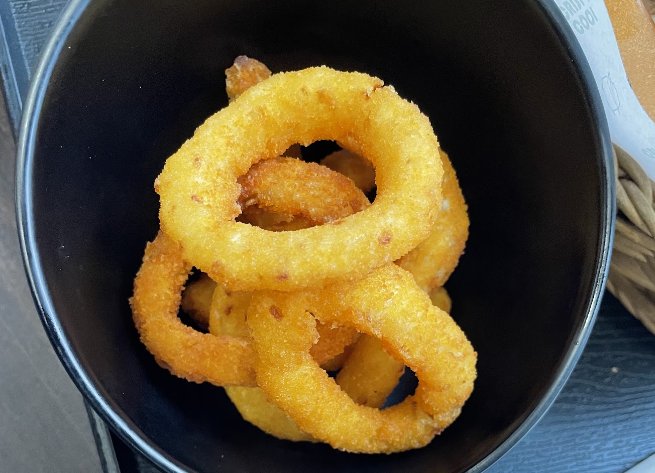 他們有美味的素食選擇:豆腐皮和黃花菜子!此外,他們的薯條可以說是城裡最好的薯條之一!他們的辣椒蛋黃醬也很好吃。 TBH,洋蔥圈真的不值這個錢。他們有帶空調的干淨、寬敞的室內座位選擇。我們沒有喝酒,所以不能對此發表評論。如果您趕時間,那就太好了,因為食物很快就出來了。