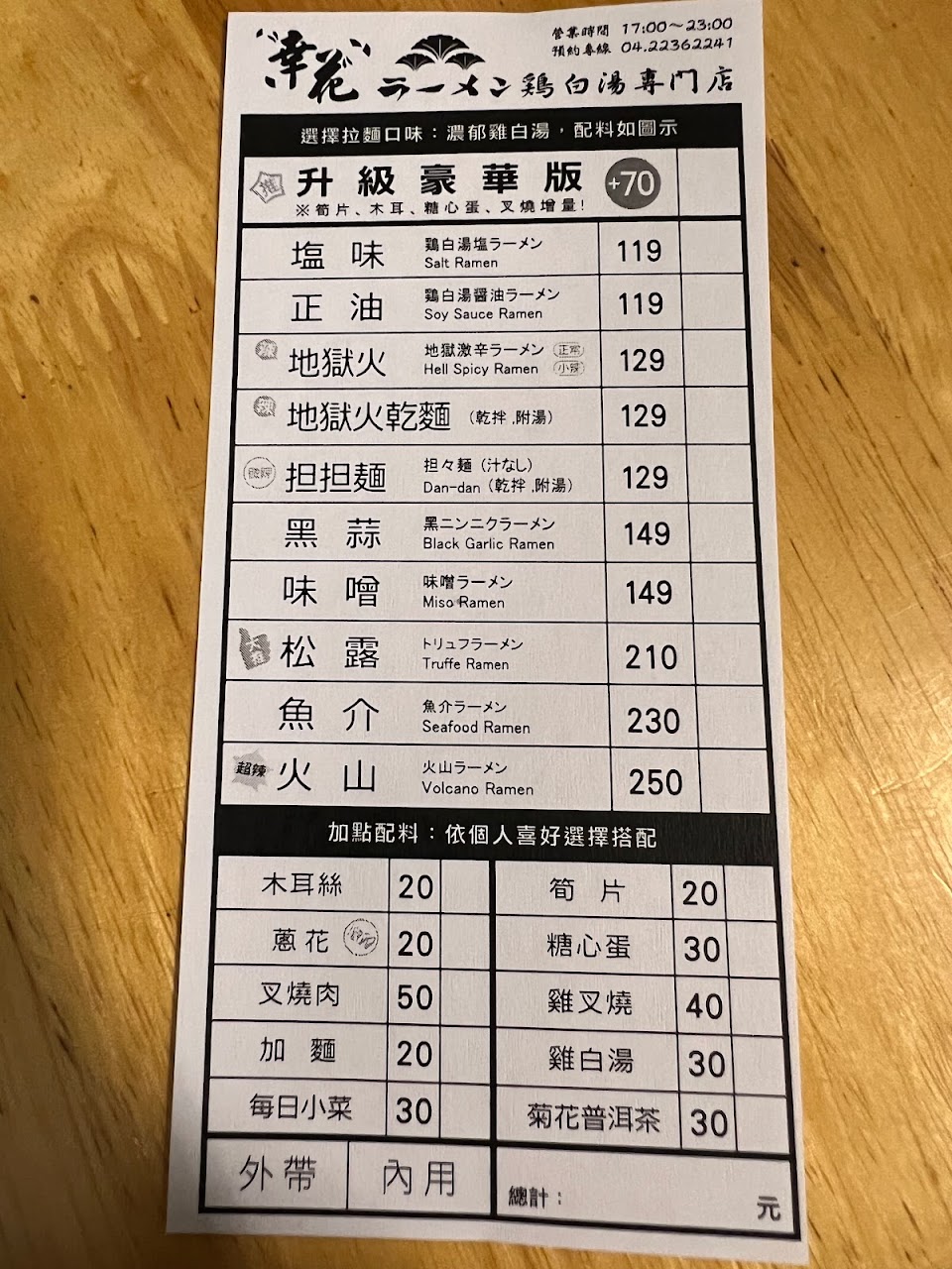 2024最新在地推薦餐廳的菜單_幸花鷄白湯拉麵 (北屯文昌店)的菜單、圖片