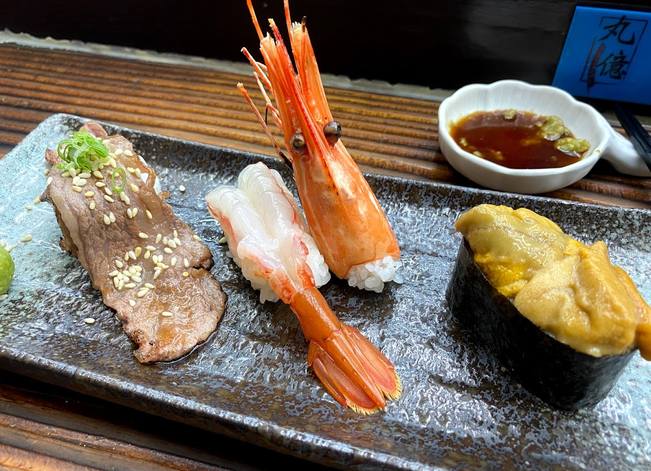 所以推薦大家,如果你是第一次來新一點利黃昏市場,可以來丸億生魚片壽司這邊享受美味的生魚片,絕對可以幫你的荷包省下很多錢!