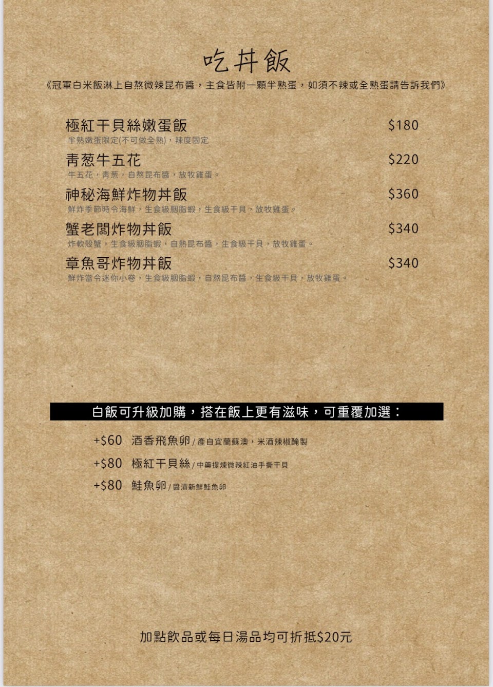 2.貼心的桌邊點餐結帳,特餐類會加收10%服務費,加點飲料、例湯可折扣30元。