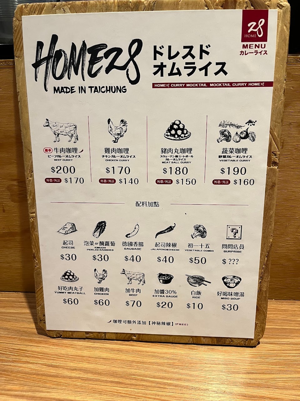 2024最新在地推薦餐廳的菜單_Home28咖哩 北平店的菜單、圖片