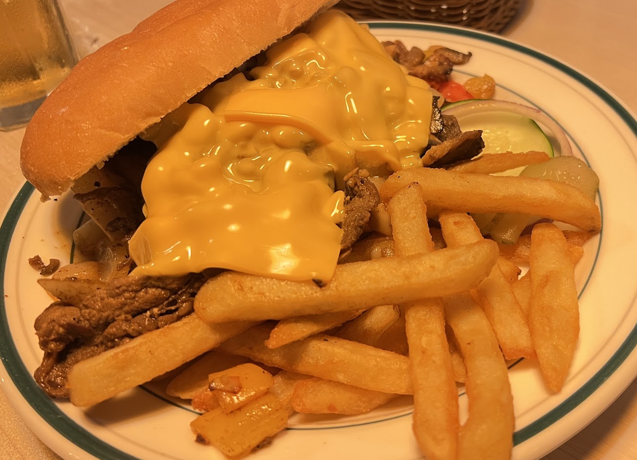 歐姆蛋煎過頭變煎蛋,牛肉餡很香但起司跟蘑菇比例都偏少。薯塊跟麵包偏乾,讓人忍不住加番茄醬跟奶油吃才咽下口。