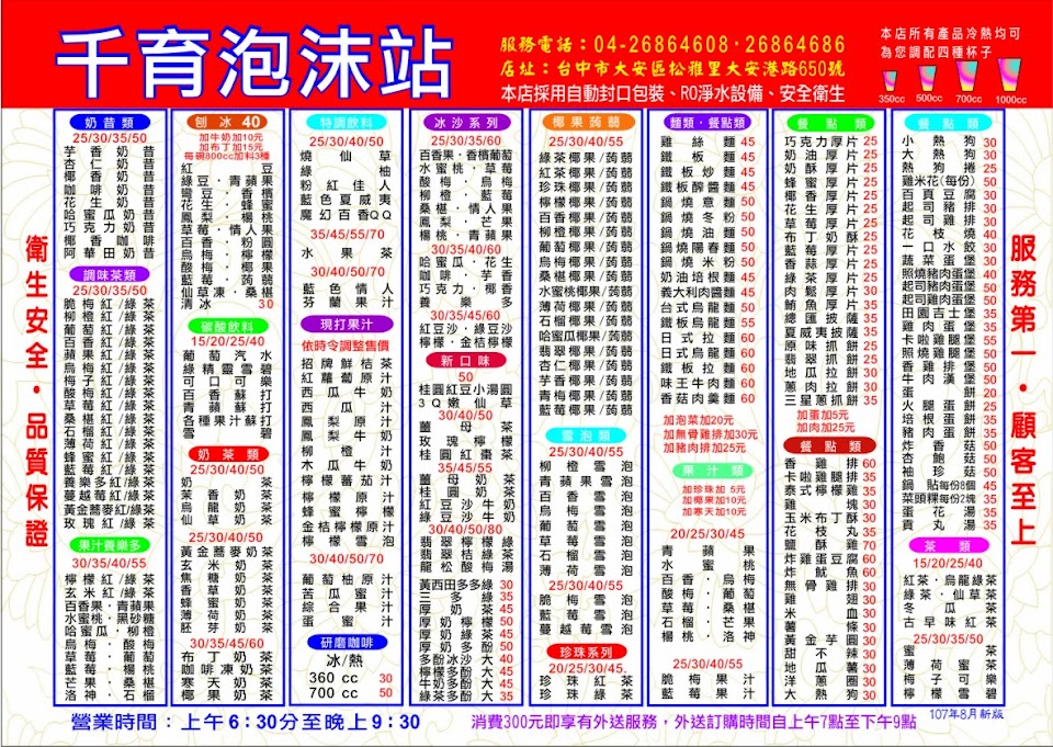 這家飲料店在地方上算是老店了,主要以天然素材為材料的飲品專賣店,人氣飲料有:中藥材草本提煉酸梅湯,天然仙草茶,百香水菓茶飲,另外店家也有提供熱食:鍋燒麵十餘種,炸雞排多款,是ㄧ家複合式餐飲店,早上6點開始就有中西式早點服務,也有提供外送服務,深受地方歡迎!