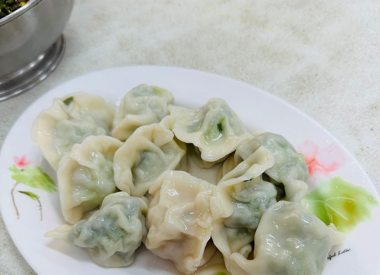 水餃皮薄肉餡很香。蔥油餅外皮酥脆好吃不油。