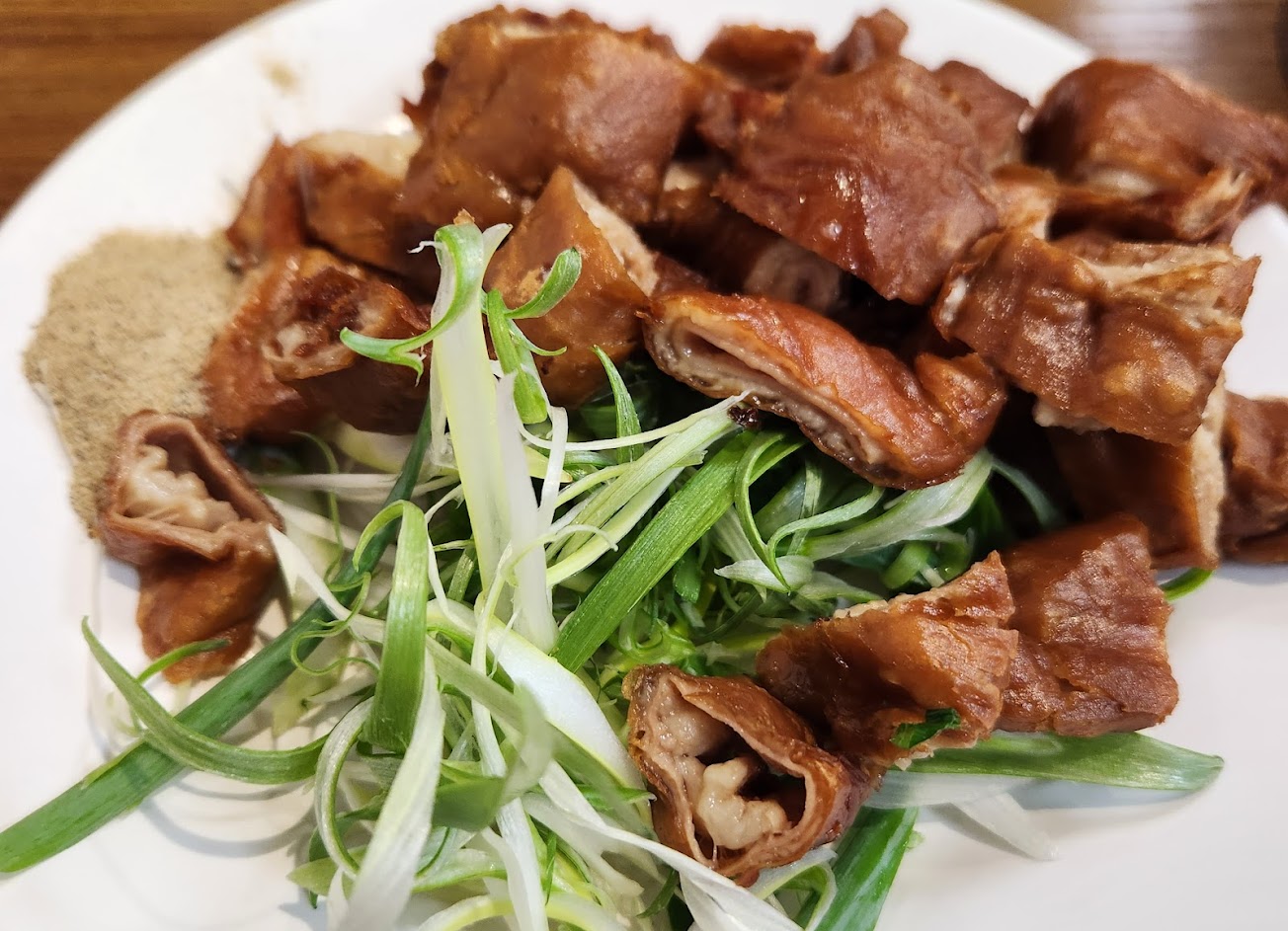 最喜歡梅干扣肉,有夠好吃,配刈包超好吃!蔥油餅也很不錯,超大塊的,然後也會推麻辣牛肚,太絕了?