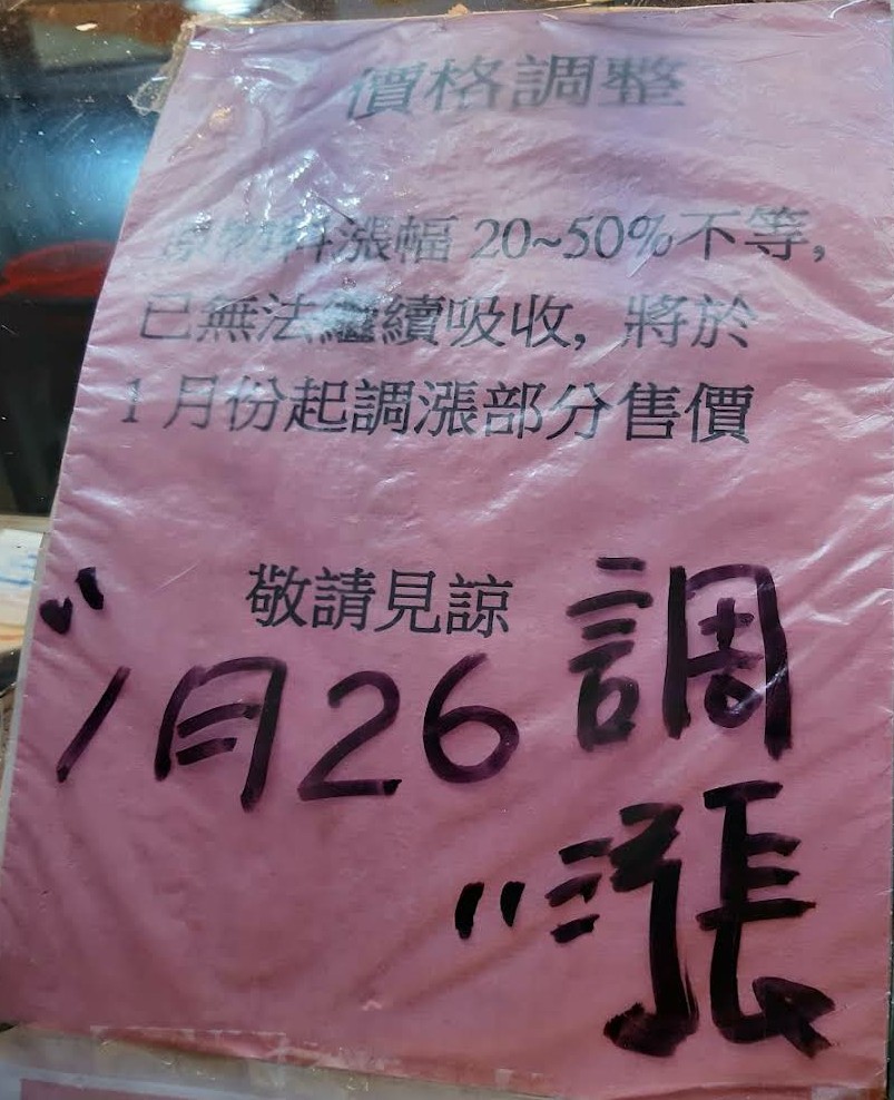 因應原物料漲幅20%-50%不等,故而2022/01/26起 調漲部份價格。