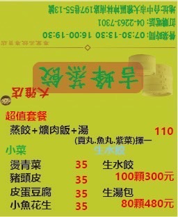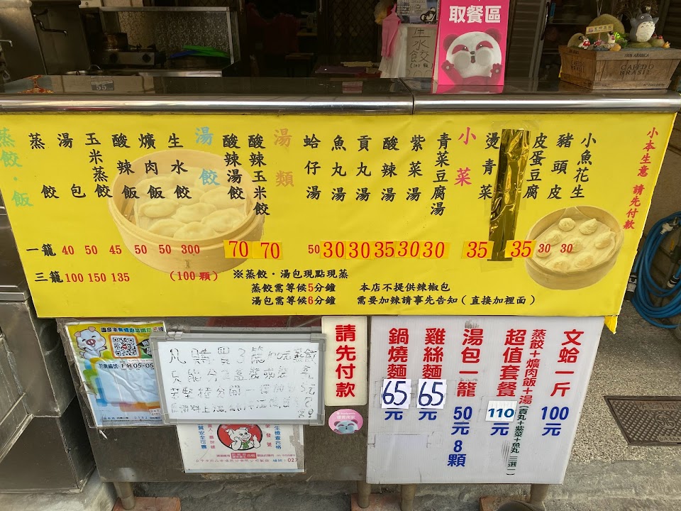 口味不錯,蒸餃三盒100,可以外帶也可以內用,店門口停車不太便利,對面有超市的臨時停車場可以臨停,建議外帶的朋友,可以事先打電話預訂,蒸餃、湯包都是現蒸,需要稍微等候一些時間。
