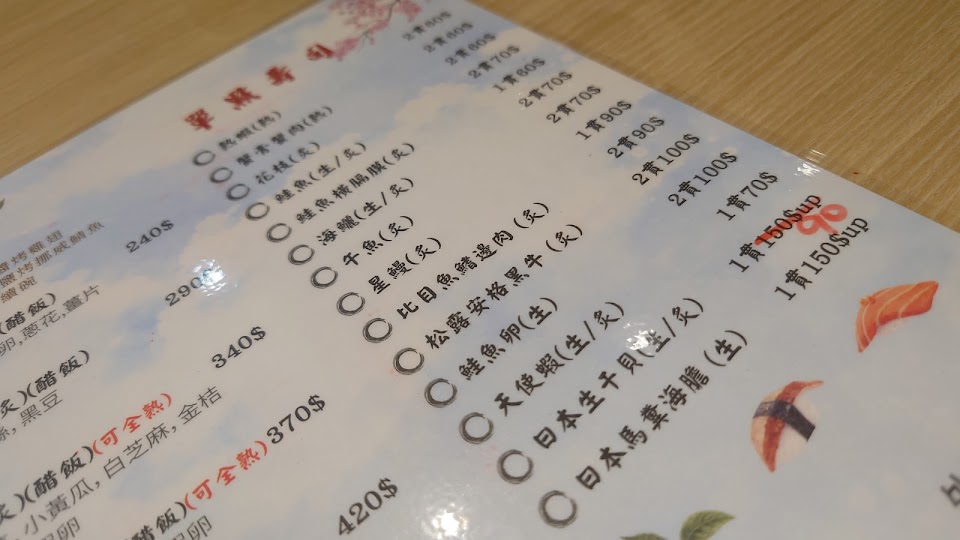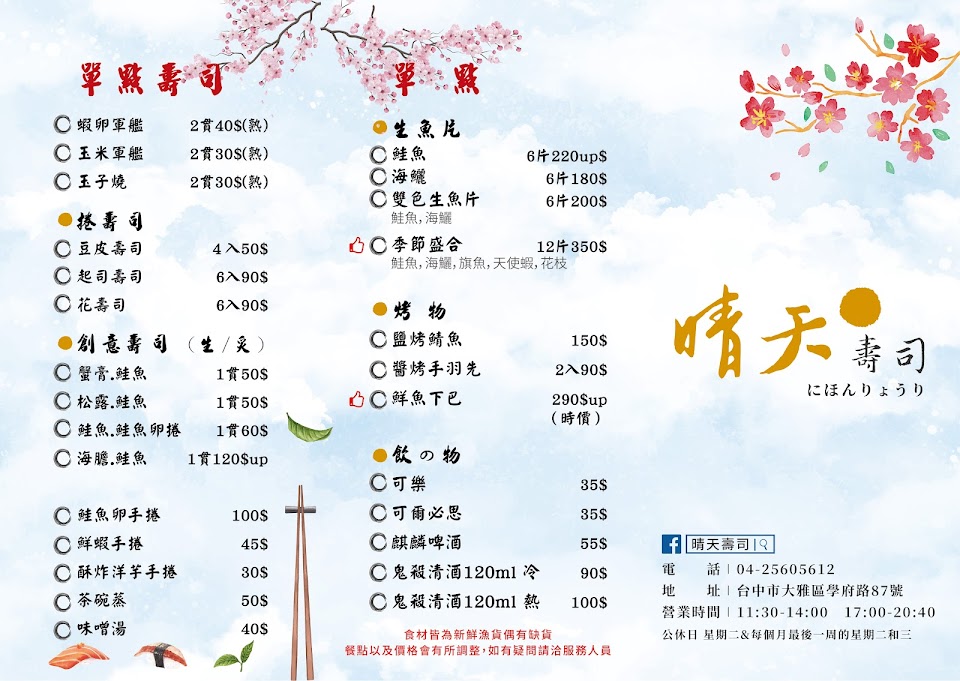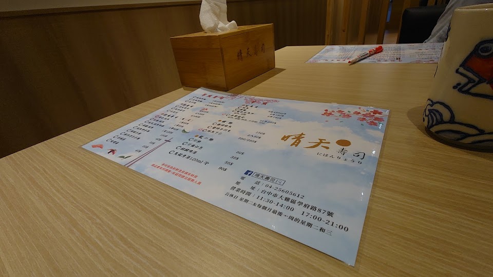 2024最新在地推薦餐廳的菜單_晴天壽司的菜單、圖片