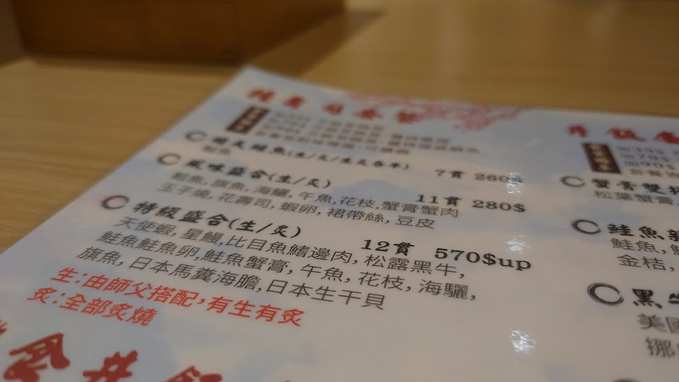 裡面裝潢很日式風,在大雅區比較少見了,握壽司都蠻好吃的,不過如果是套餐組合,味道我覺得就還好,畢竟部分可能想用比較好一點的食材,所以反而降低水準的感覺,不然依照單純點鮭魚壽司的感覺,理論上應該不會太差,因為鮭魚壽司就比較好