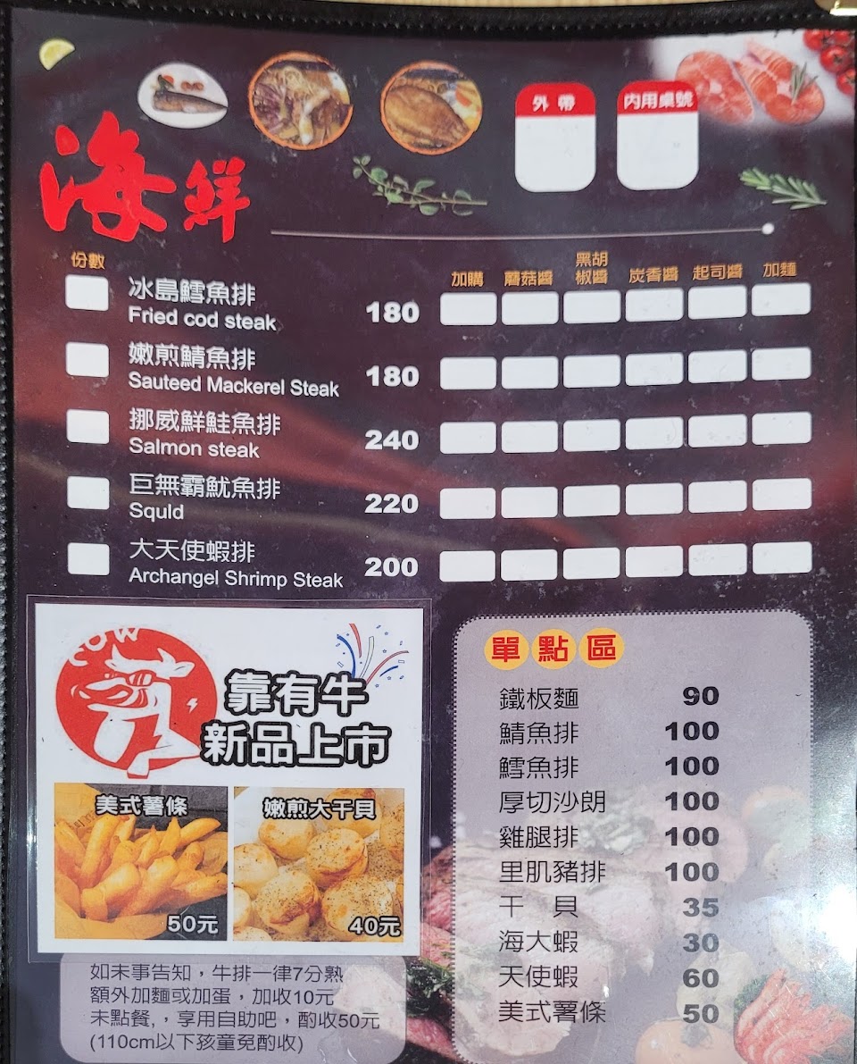 2024最新在地推薦餐廳的菜單_靠!有牛炙燒牛排的菜單、圖片