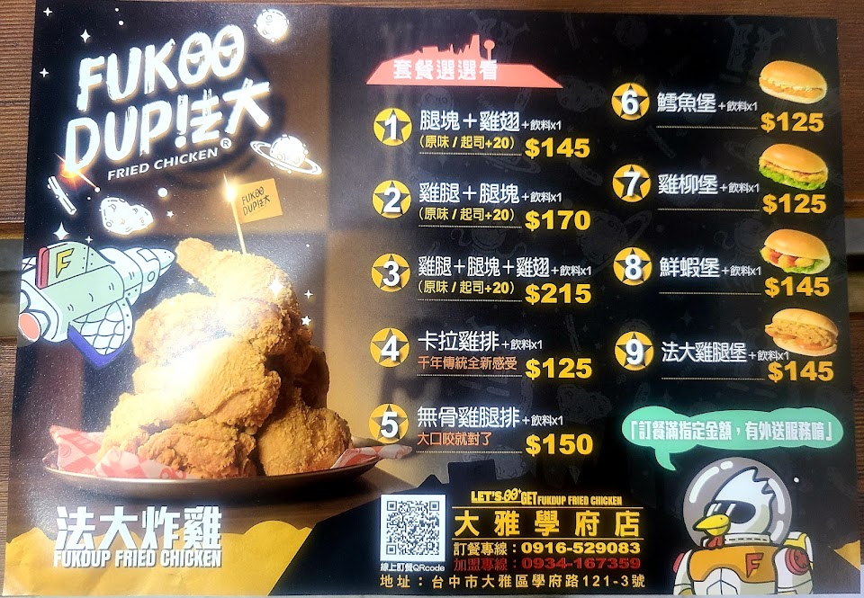 2024最新在地推薦餐廳的菜單_法大炸雞 Fukdup Fried Chicken-大雅學府店的菜單、圖片