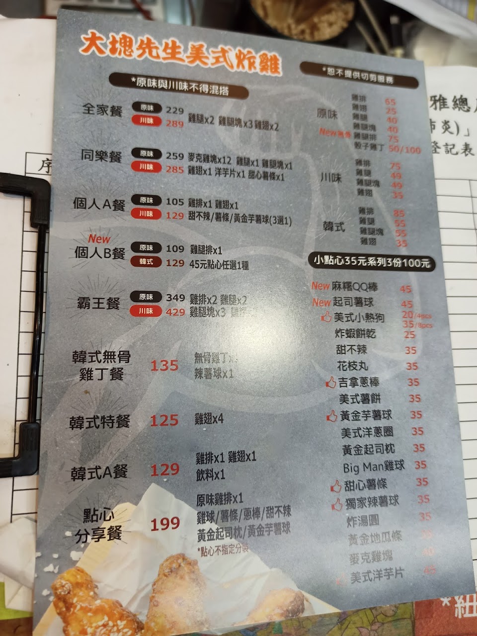 2024最新在地推薦餐廳的菜單_大塊先生美式炸雞(大雅總店)的菜單、圖片