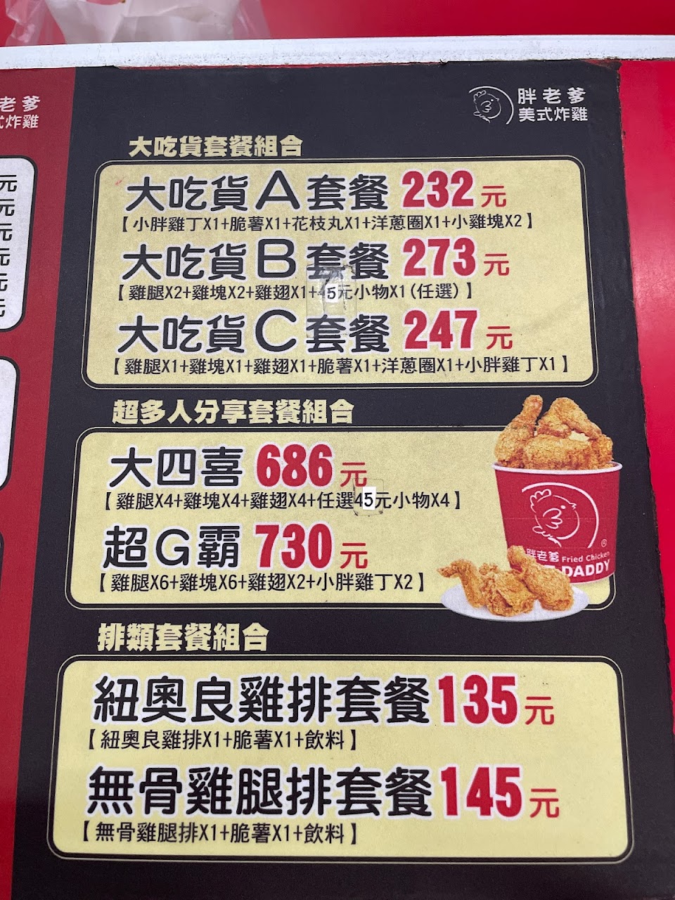 2024最新在地推薦餐廳的菜單_胖老爹美式炸雞 大雅店的菜單、圖片