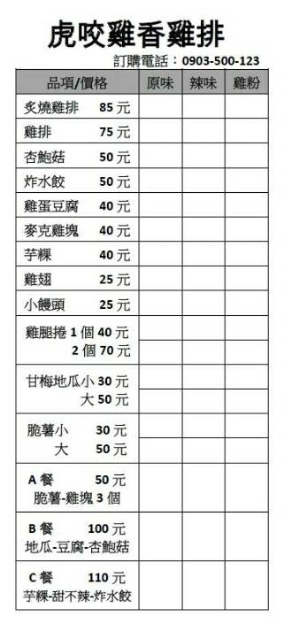 2024最新在地推薦餐廳的菜單_虎咬雞香雞排的菜單、圖片